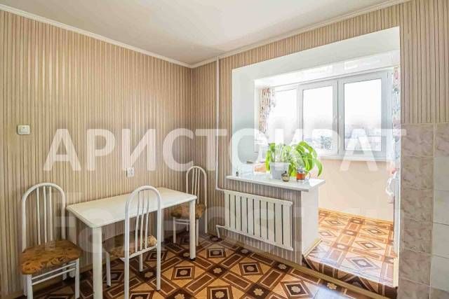 Пластиковые окна, Стены выровнены, обои, на полу линолеум, в туалете и ванной кафель. Межкомнатные двери окрашены, входная дверь железная. Большая кухня с лоджией.