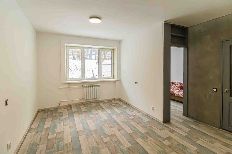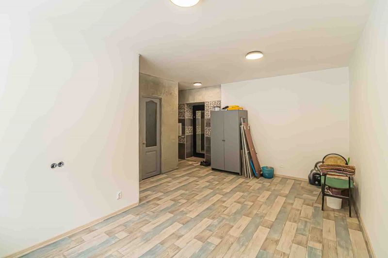 Железная дверь, Линолеум, Межкомнатные двери, Пластиковые окна, Стены выровнены, Керамическая плитка,, Натяжной потолок, Софиты.
