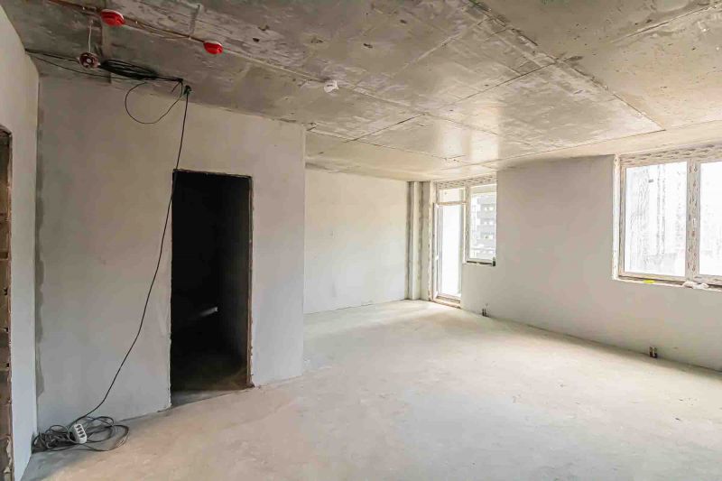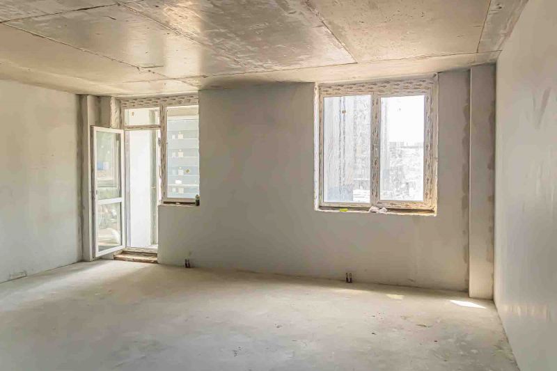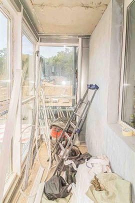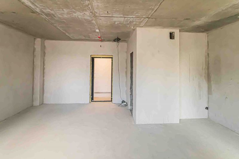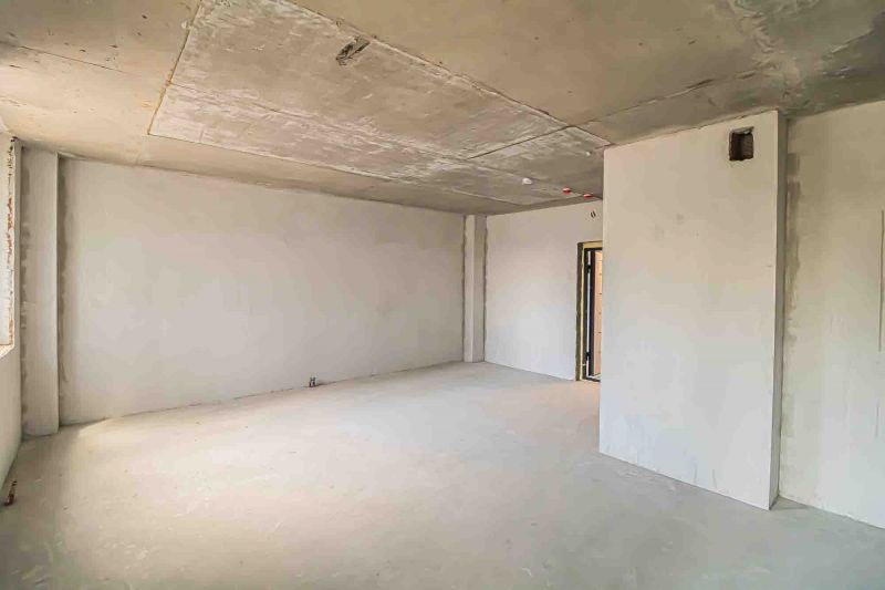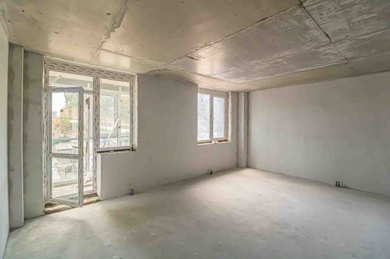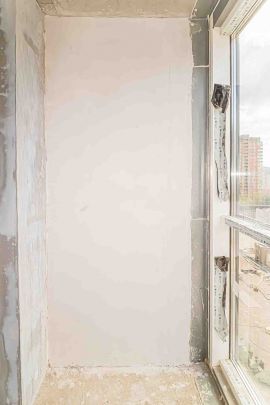 Стены в основном помещении, а так же балконе выровнены и отштукатурены.