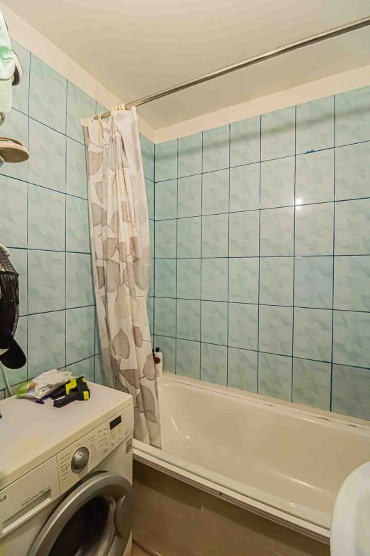 Сделан косметический ремонт. Линолеум, стены выровнены, оклеены обоями, потолок выровнен, санузел раздельный ванная комната , кафель,