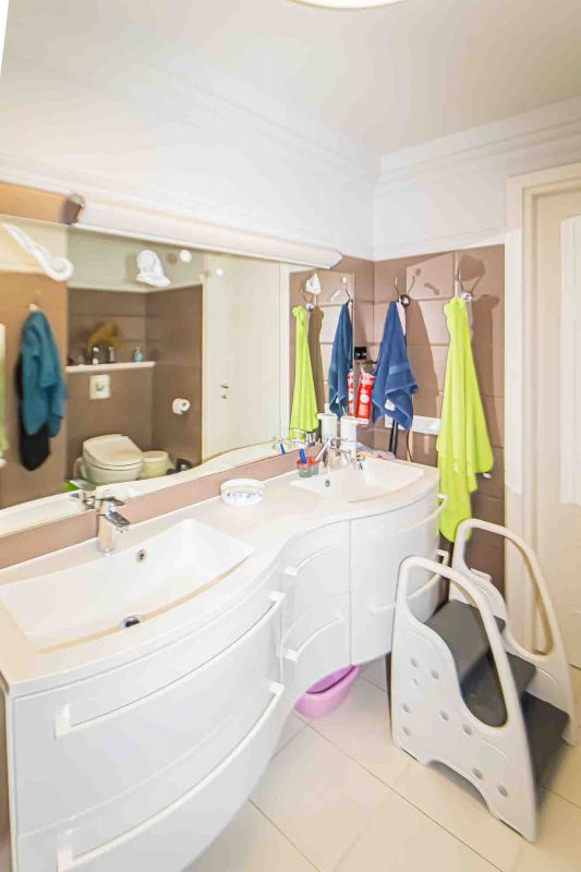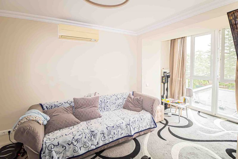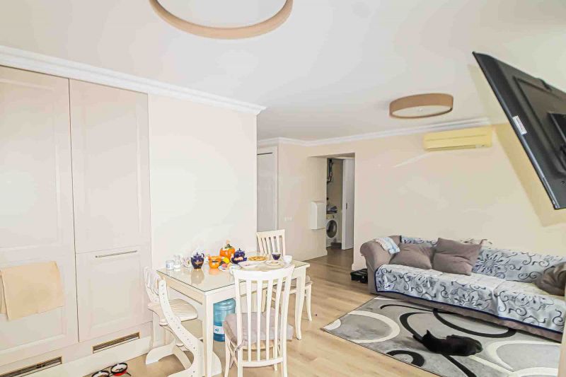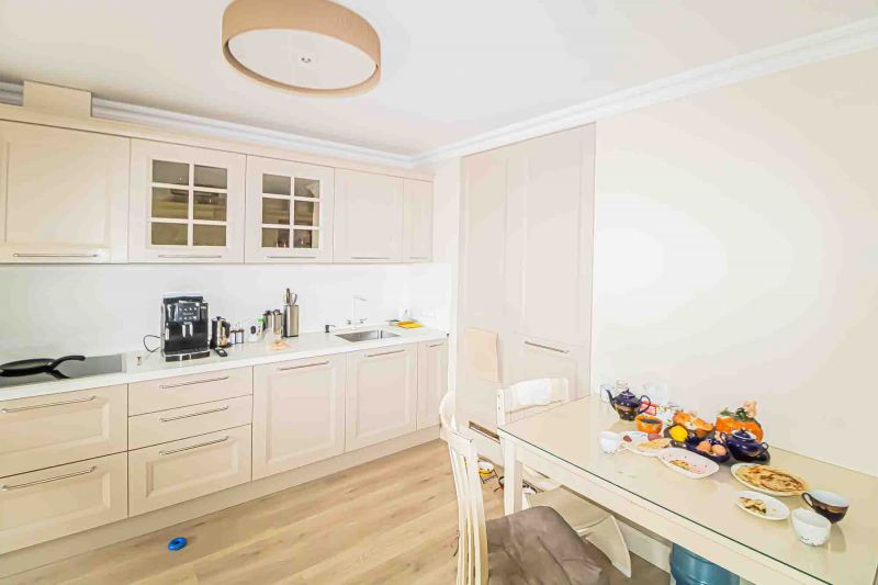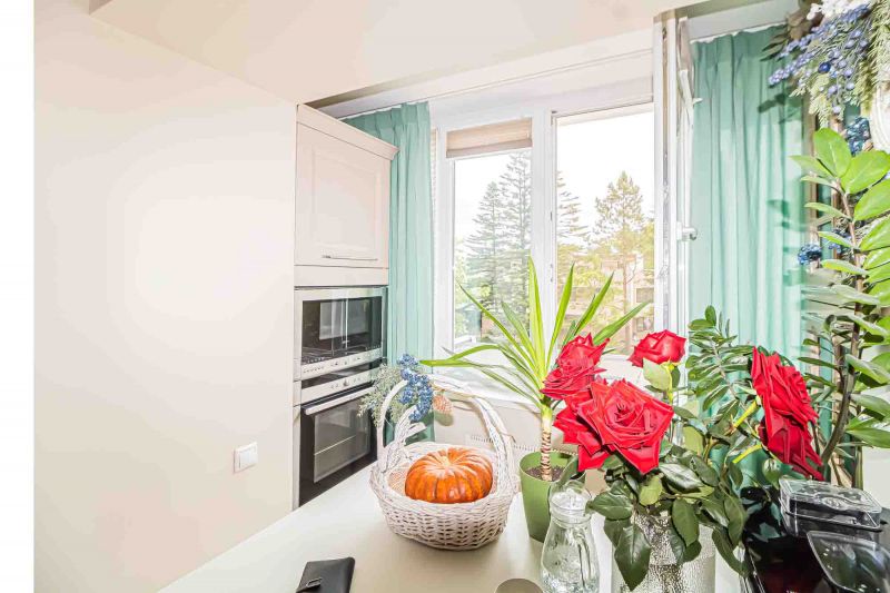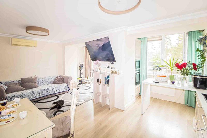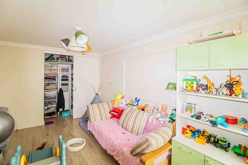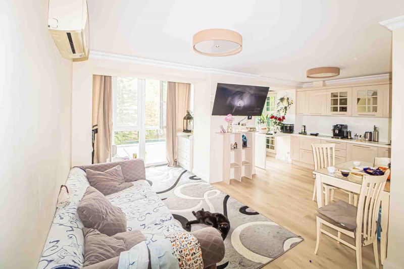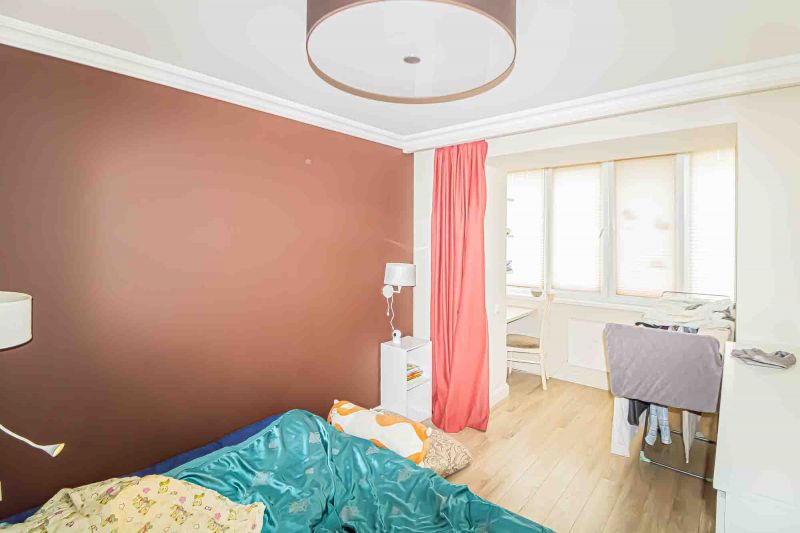 Сделан ремонт из качественных материалов В кухне-гостинной, детской и холле использована светлая цветовая гамма, что добавило ощущение пространства и уюта. В спальне и ванной добавлены интересные цветовые дизайнерские решения, что сделало пространство стильным и комфортным.