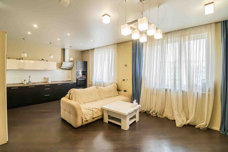 Железная дверь, Ламинат, Межкомнатные двери, Натяжной потолок, Пластиковые окна, Софиты, Стены выровнены, Керамическая плитка.