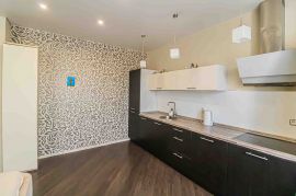 В квартире уже есть всё необходимое для комфортного проживания: современная мебель и бытовая техника, включая посудомоечную машину, микроволновую печь, вытяжку, стеклокерамическую плиту, титан и холодильник.