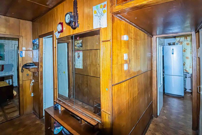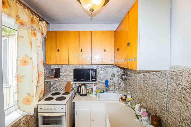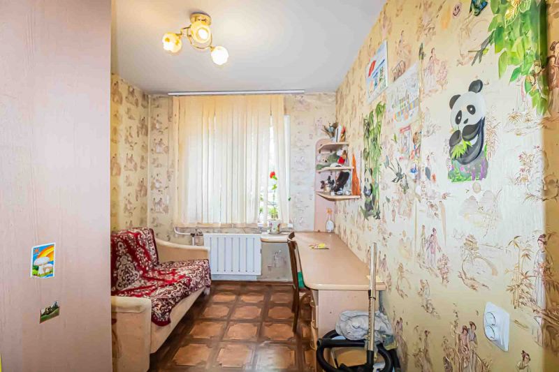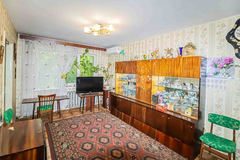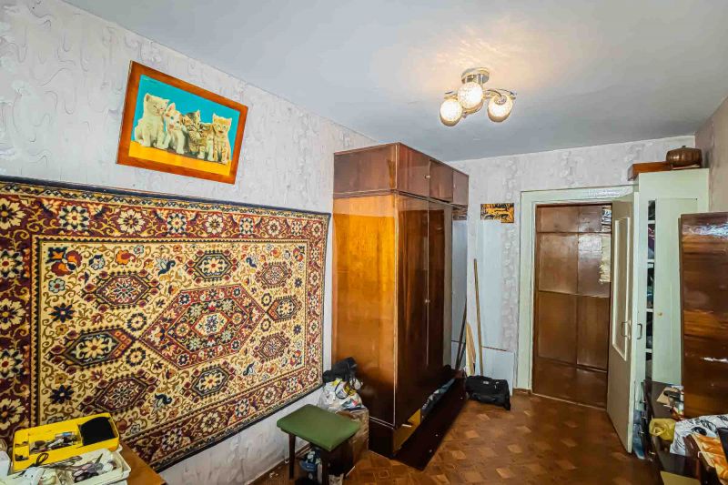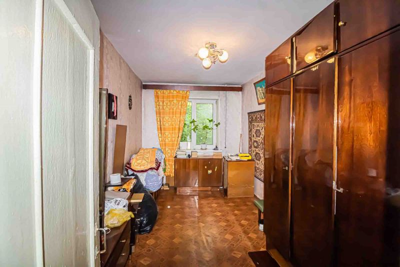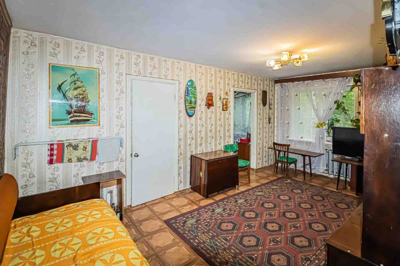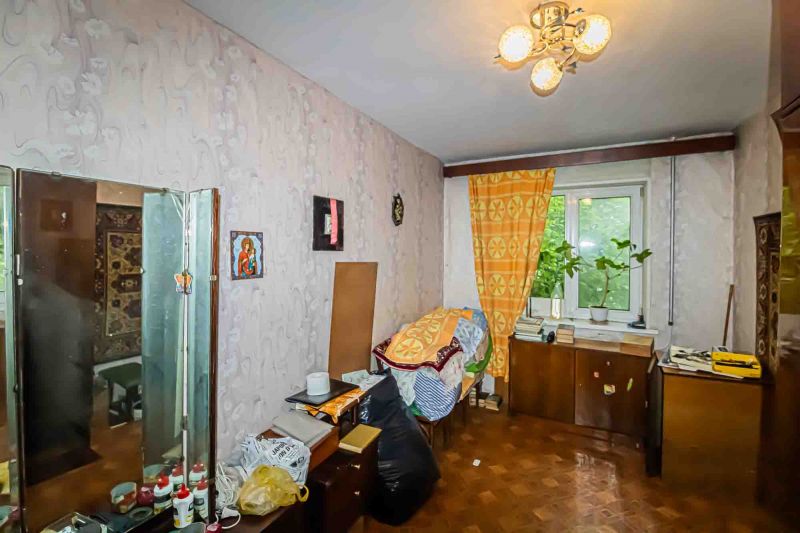 Косметический ремонт требует обновления. Железная дверь, Линолеум, Пластиковые окна, Стены выровнены, Обои.