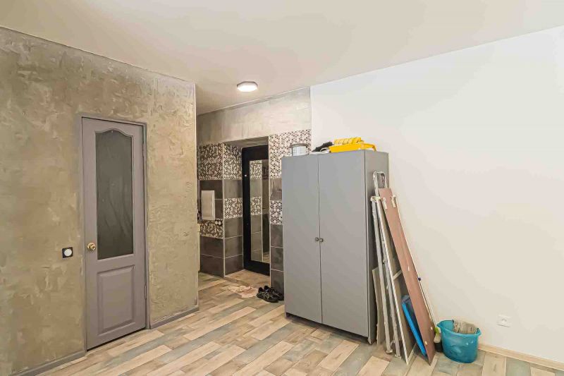 Железная дверь, Линолеум, Межкомнатные двери, Пластиковые окна, Стены выровнены, Керамическая плитка,, Натяжной потолок, Софиты.